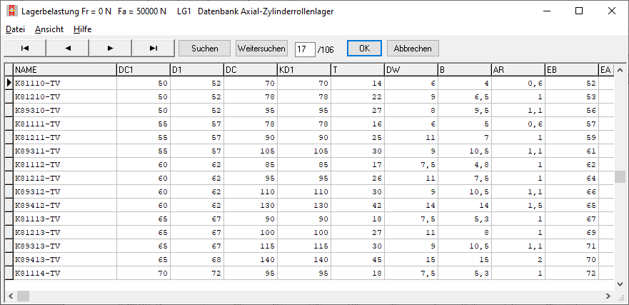 Mit LG1 kann man jetzt auch Axiallager berechnen: Axial-Nadelkränze und Axial-Zylinderrollenlager wurden neu aufgenommen.