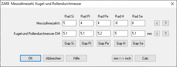 ZAR5, ZAR7, ZAR8: Zahnlückenzeichnung bei Eingabe Messkreis
