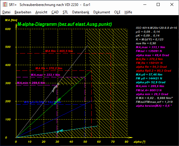 SR1 berechnet den Anziehdrehwinkel vom elastischen Ausgangspunkt bis zum angegebenen Streckgrenzenfaktor.
