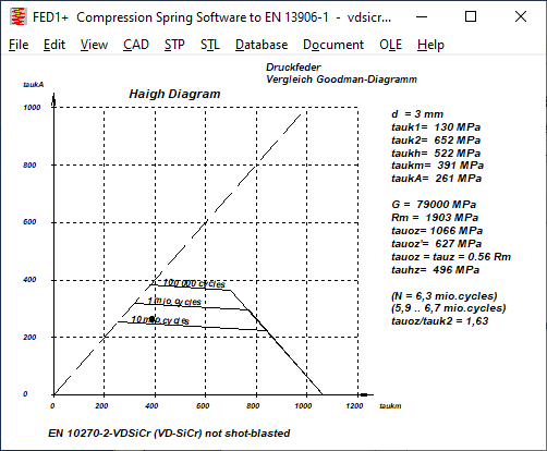 This Haigh diagram is used in a research project by the Association of the German Spring Industry to determine new fatigue strength values at the TU Ilmenau, so you can compare the Haigh diagrams used there with those in HEXAGON FED.