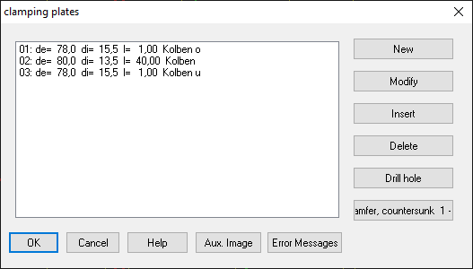 This splitting of the clamping parts is disadvantageous when calculating the amount of setting fz, because the new clamping plates have no separating surfaces. Therefore, you can now enter the number of real clamping plates under Edit\Load. This input is temporary and is only used to calculate the setting amount fz.