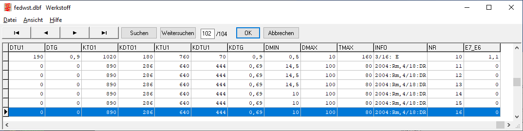 Die pressung.dbf Datenbank mit Werkstoffdaten der Klemmplatten der deutschen und englischen Version unterscheiden sich, sie sind nicht austauschbar. Bitte beachten, wenn Sie deutsche und englische Version verwenden. In der englischen Version wurde jetzt ein Fehler beim E-Modul des Werkstoffs "SF Cu F24" festgestellt, hier muss 123000 MPa stehen, nicht 12300. Bitte korrigieren unter "Database\Material Plates\Nut\Base data 0 (pressung.dbf)".
