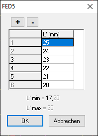 Ähnlich wie in FED1+ kann man jetzt auch in FED5,6,7 zusätzliche Federlängen eingeben, für welche die Federkraft in eine zusätzliche Federkennlinie (Ansicht\Federkennlinie\F'-s') eingezeichnet wird.