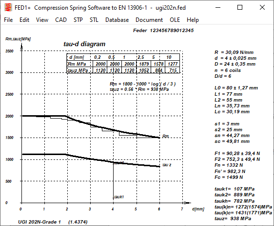 The leg length of bent legs is not clearly defined, neither in the FED3+ drawing nor in EN 13906-3. For this reason, the torsion springs are now displayed without dimensions. Only if you change the setting under "Edit\Calculation method" will the legs be drawn with dimensions as before.