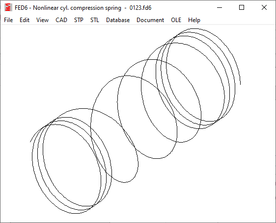 Just like in FED1+, FED3+, FED5, FED17, you can now also export the center line of the spring as a 3D helix in STP format in FED6 and FED7 and transfer it to CAD. To represent a 3D spring, you can then extrude the wire around the helix in the CAD program and cut off the spring ends (in the case of ground spring ends).