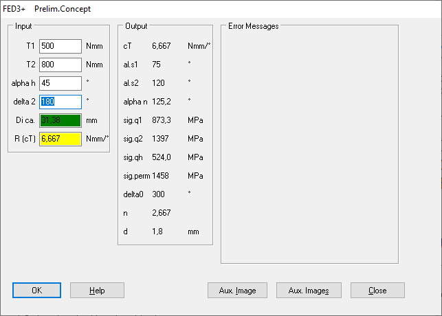 In the pre-design or in the design basic data or in the design quick input, the entered spring angle delta2 was changed for the calculation method R = 1/(1/R0+1/RS1+1/RS2) and for supported springs with bent legs and a large lever arm. Now only the coil diameter is adjusted when changing the input data.