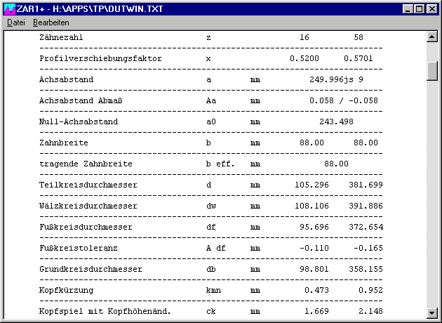 In der neuen 32-bit Version von ZAR1+ wurde die Bedienung durch Zusammenfassung von Eingabefeldern verbessert, die Eingabe von Werkzeugprofil, Qualität, Festigkeit wird dadurch übersichtlicher und geht schneller. Die Animation des Zahneingriffs kann man alternativ im Einzelschrittmodus ablaufen lassen.
