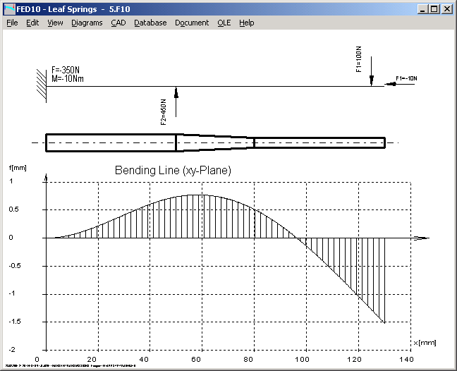 Demnächst gibt es ein neues Programm zur Berechnung von Blattfedern. Das Programm ist ähnlich aufgebaut wie das Trägerberechnungsprogramm TR1 und das Wellenberechnunsprogramm WL1+. Während bei TR1 die Querschnittsgeometrie beliebig definiert werden kann, jedoch über die ganze Länge konstant ist, kann bei FED10 die Geometrie in der x-z-Ebene frei definiert werden, und die Blechdicke muß konstant sein.