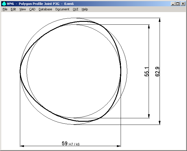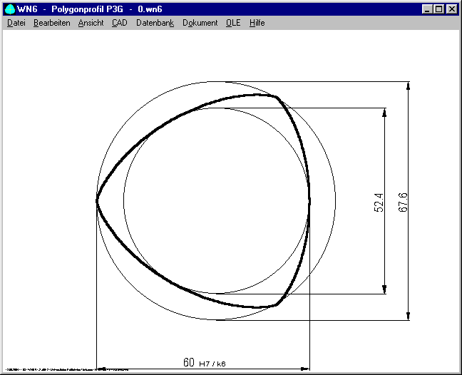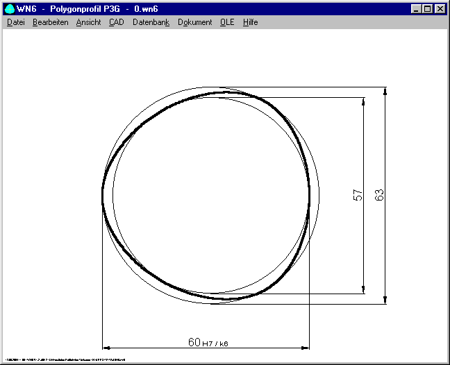 Profile curve of P3G profiles is now drawn as true-scale polyline. At "Edit->Config" you can define the number and type of drawing elements (Line or Polyline). In earlier versions, the curve was built by two arcs (according to DIN 32711).