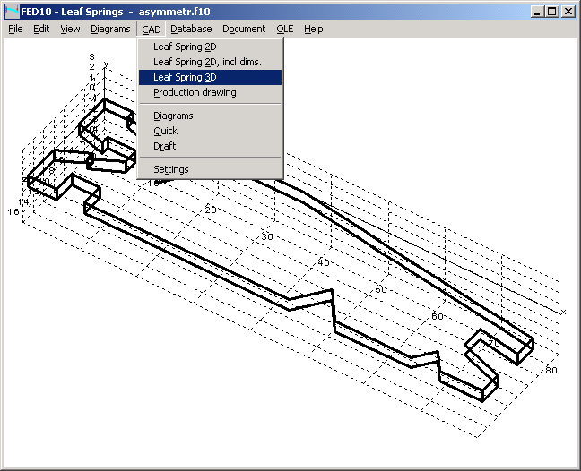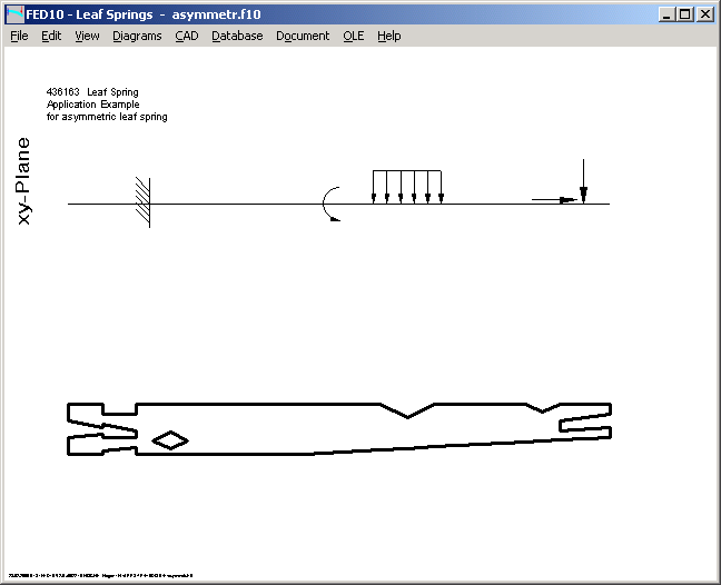 Until now, only symmetrical leaf springs could be calculated with FED10. Input is easy for symmetrical leaf springs, sections are simply defined by width and length. New version 2.0 supports also asymmetrical leaf springs. Asymmetrical loads (that cause torsion) are not supported, all loads are centric. Input of asymmetrical geometry is not as easy, you must define internal and external coordinates of each section. For internal calculation, asymmetrical leaf spring is converted into a symmetrical leaf spring geometry of identical properties.