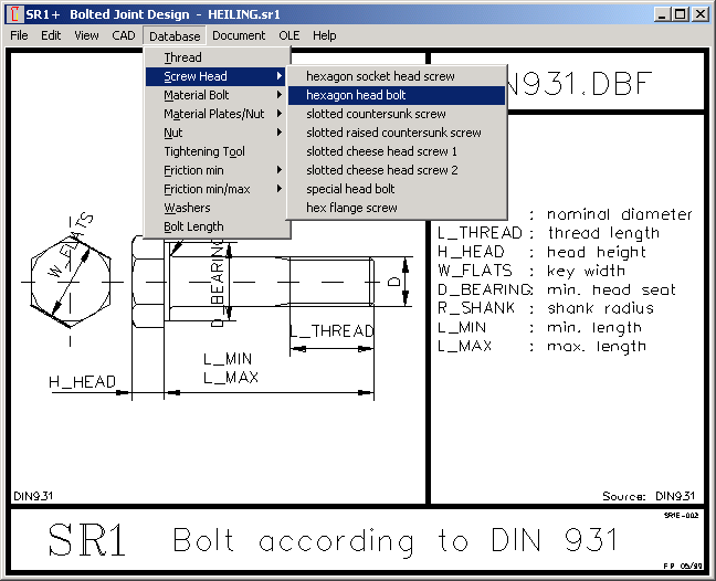 SR1 calculates bolt diameters d2 and d3 if you select a tolerance class. Or you can choose to enter it manually. For this case is d2min=d2max=d2 and d3min=d3max=d3 and d_max=d. The minimum thread diameter d_min is used for calculation of thread strip safety according to VDI 2230, so you also have to input d_min now. The calculation of thread strip safety according to VDI 2230 is based on Alexander formulas from 1977. But it seems that this formulas are not complete, valid only for the case that bolt material is better than nut material. For case of same material or nut material better, Alexander defines another calculation with factor C2. This one is not found in VDI 2230. Better use calculation of thread strip safety according to Dose.