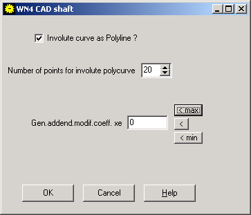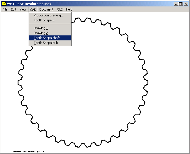 Generation of CAD files from involute splines has been made more convenient now. New menu items "Tooth shape shaft" and "Tooth shape hub" open a configuration window to set resolution, drawing mode and tolerance. After that, just select if you want to generate a DXF or IGES file.