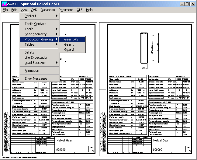 Production drawings and tables for gear 1 and gear 2 can now be displayed together on one screen.