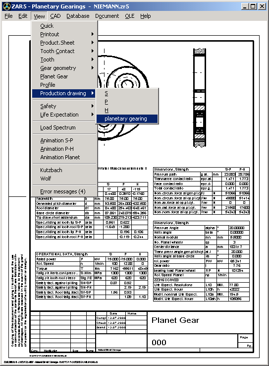At "View->Tables", charts with gear data, measurement data and tolerances have been added.