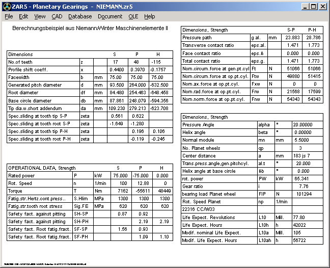 Distance between planet gears will be calculated and printed now. A negative value means collision. A warning message appears, if distance is less than 0.25 * module. If the distance is smaller than 0.1 * module, ZAR5 gives an error message.