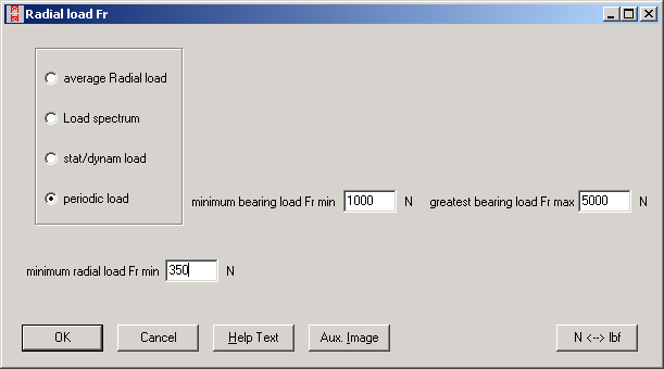 Equivalent bearing load is calculated from average axial load and average radial load on the bearing. Average radial and axial load can also be calculated from load spectrum, static/dynamic load or periodical load. Input window was neatly grouped in the new version, edit windows open when you select load type.