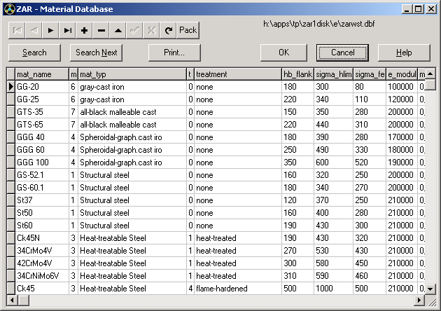 ZAR5 contains databases with material data and tool profiles, that may be extended and modified by the user.